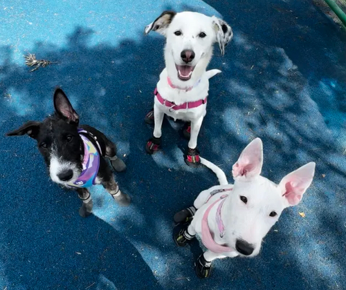 Pero, llegaron Nami y Kiki, unas mestizas de bull terrier que no podían encontrar ropa que les quedara. ¡Fue entonces cuando mamá decidió hacerles ropita con mucho amor! No se imaginaba que, al vernos tan lindas, ¡todos empezarían a pedirle ropita! Nuestros amigos y familiares la animaron, ¡y no la dejaron dudar de su talento! Y no solo pensó en nosotros, los perritos. Nuestros hermanos gatitos, Nina, Missy y Gatuzo, también tienen un lugar especial en nuestra tienda, porque todos los animalitos con estilo merecen verse geniales.